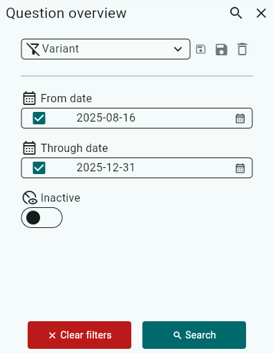 If you only want to include active questions, the Inactive marker should be black; if it is white, inactive questions will also be included.