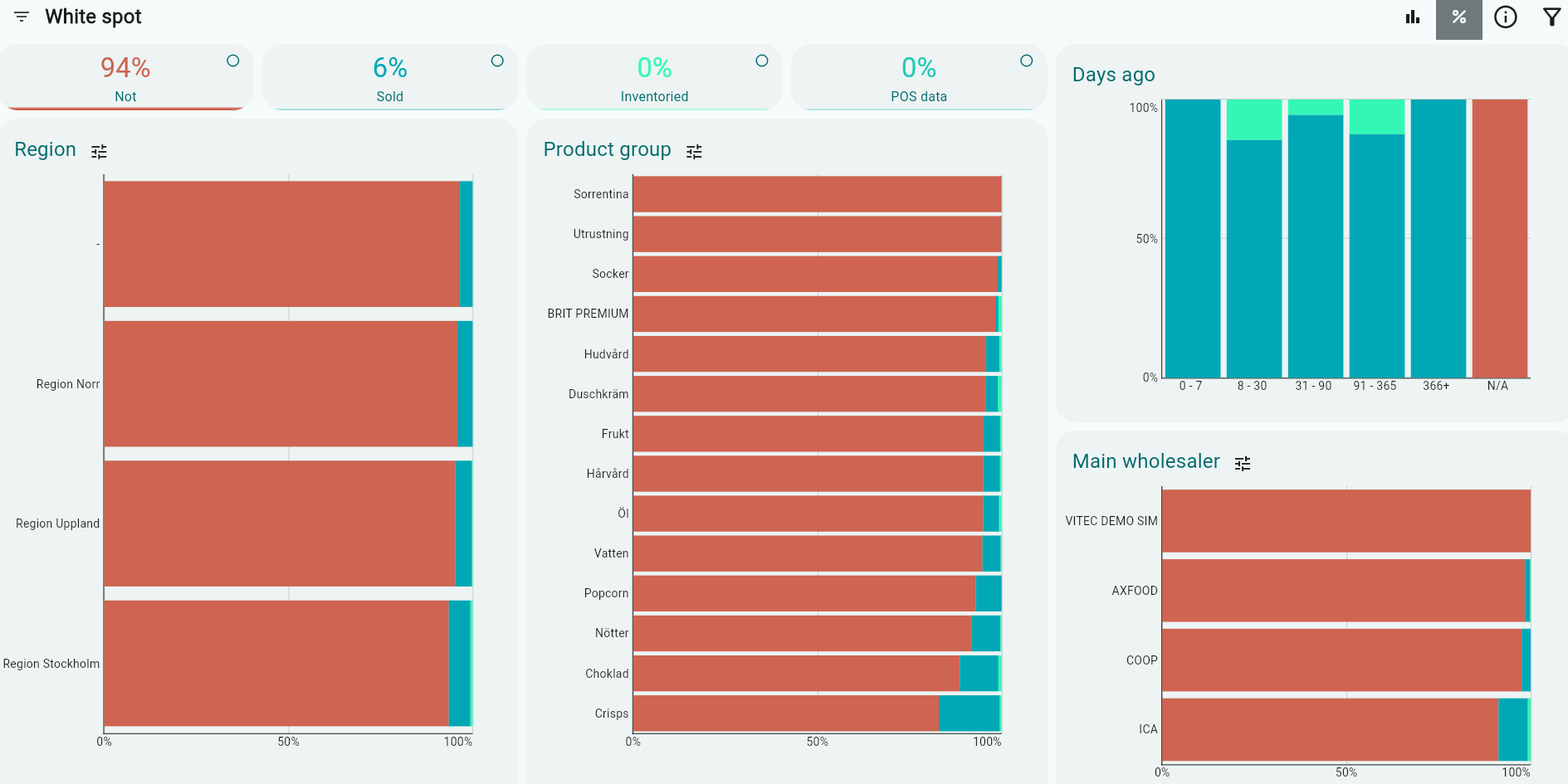 It is divided by Region, Product Group, and Chain, as well as by the time period since the last registration.