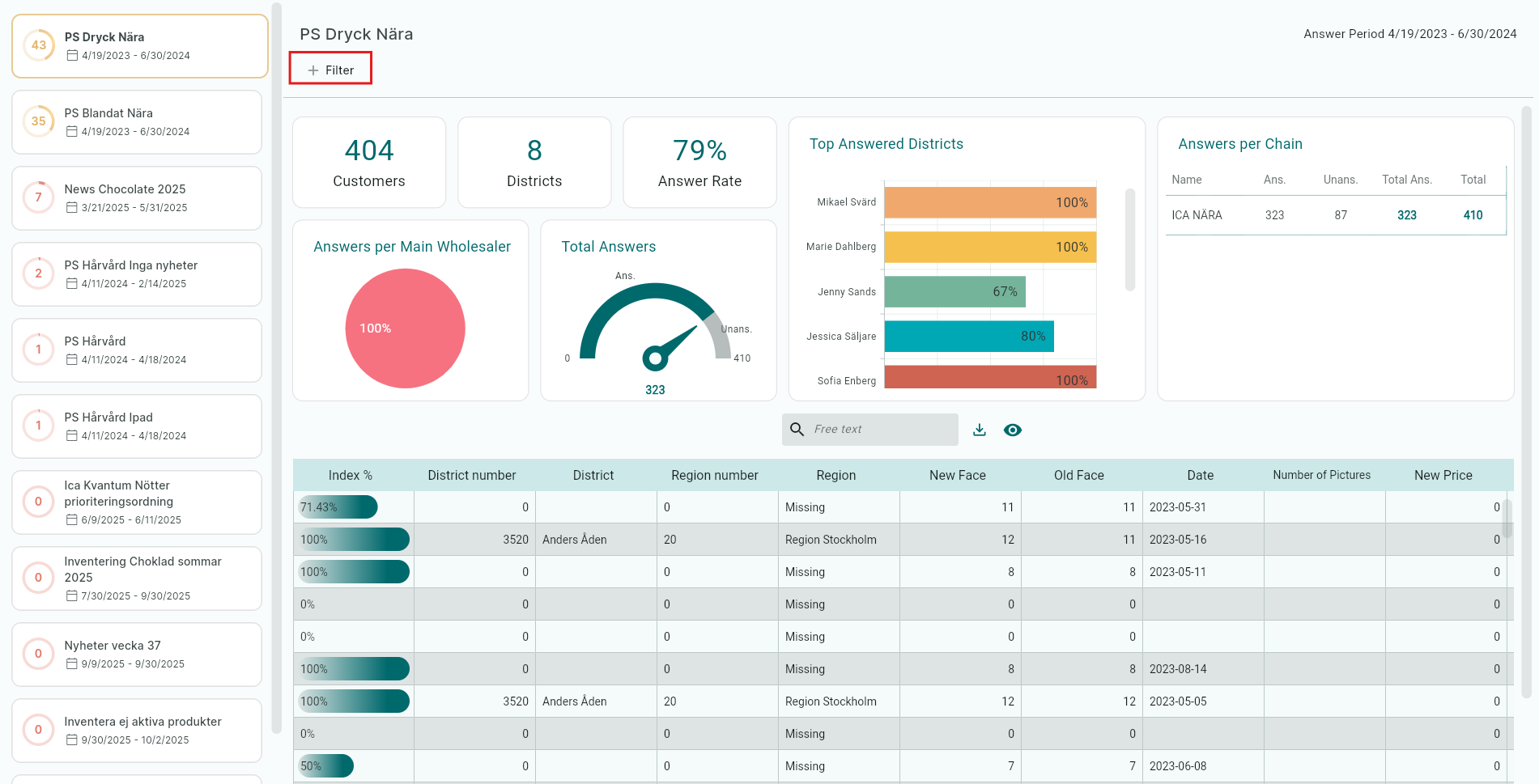 Shows active inventory orders and gives you the option to filter the report by, for example, person or chain.