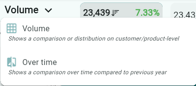 Store follow-up: Check whether volume for a specific customer has increased or decreased compared to the previous period.