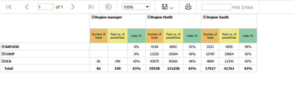 Index of listed products