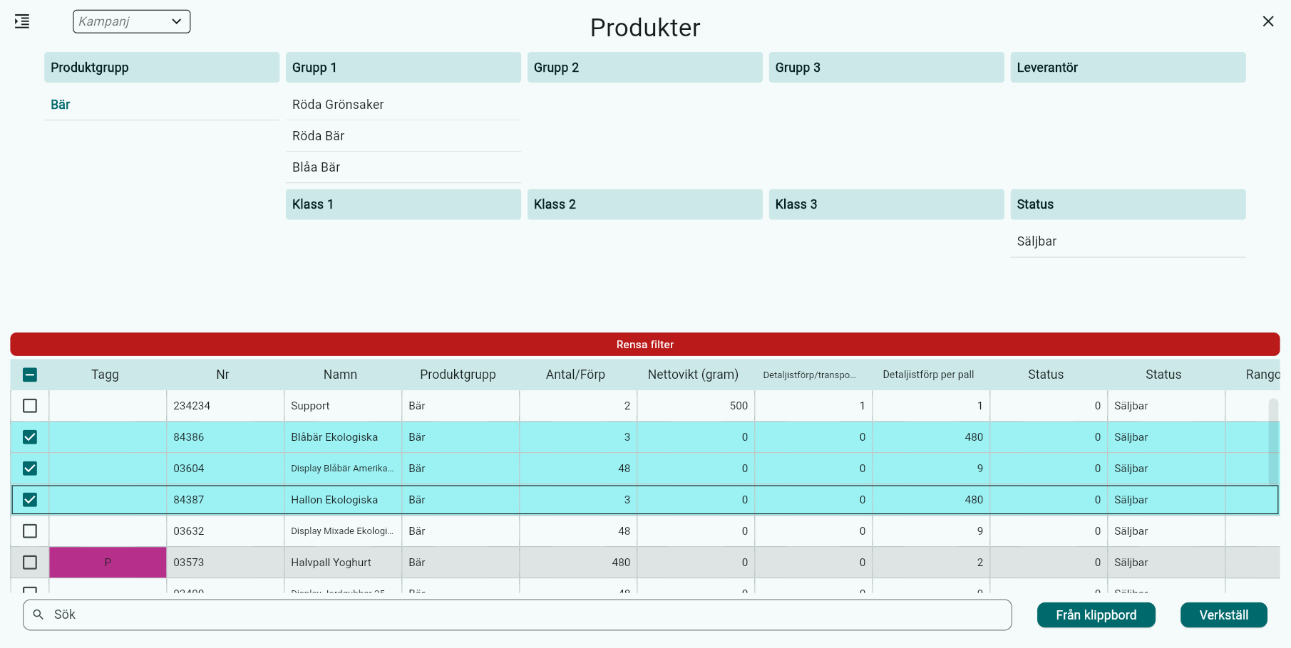 Välj de artiklar som ska ingå i förslaget och klicka på verkställ