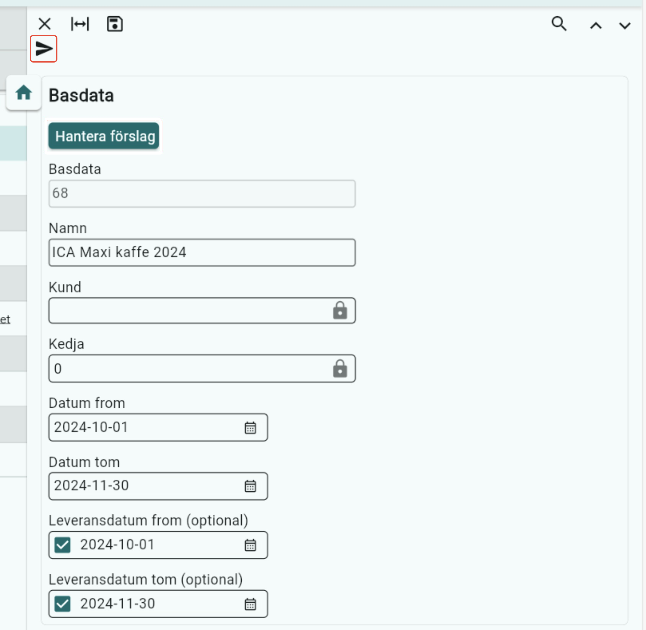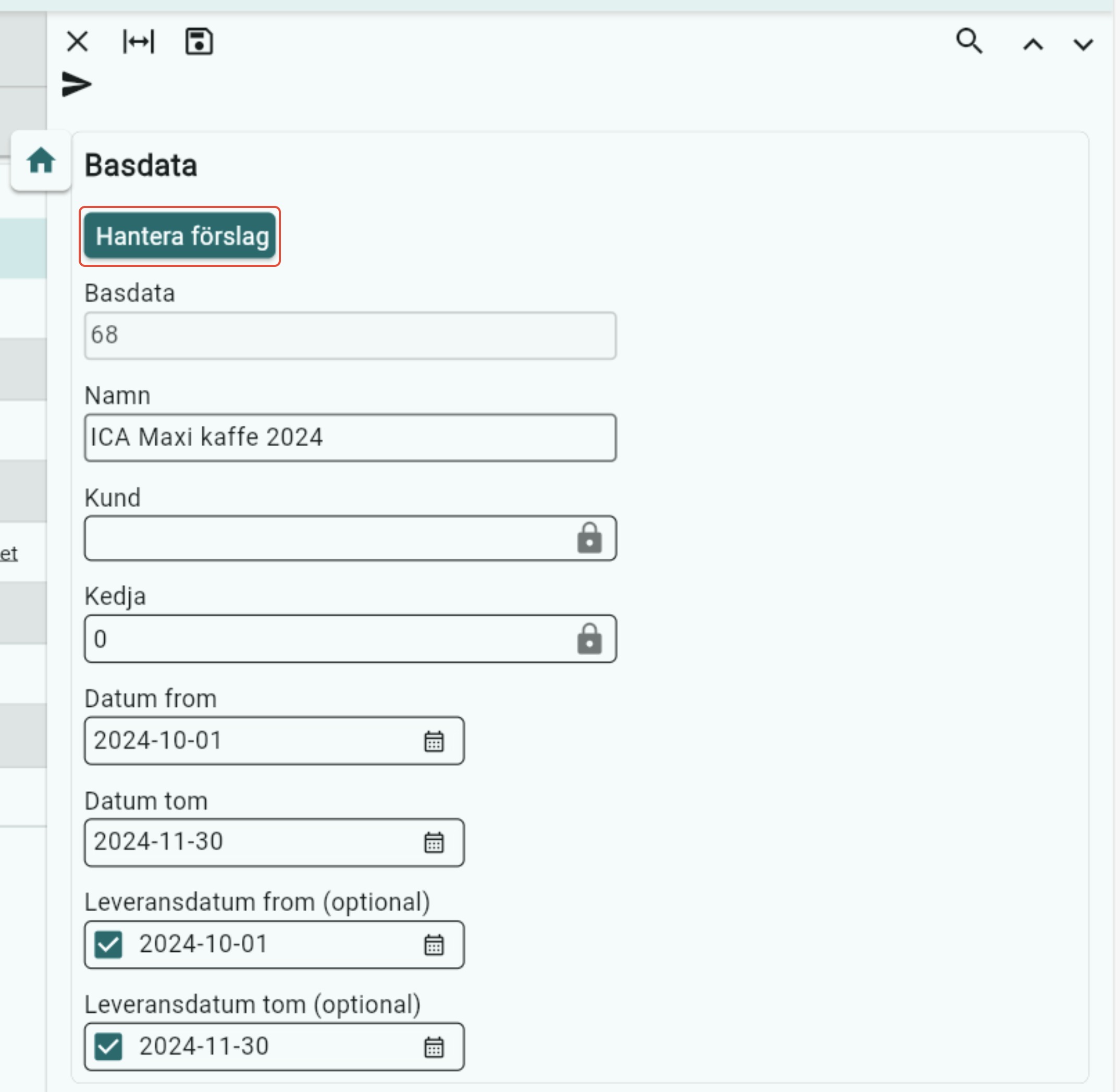 Syftet med funktionen Förslag är att skapa, administrera och dela orderförslag till säljkåren genom att samla produkter, priser och giltighetsperioder i färdiga underlag som kan uppdateras, återanvändas och användas som stöd i säljarens kunddialog.