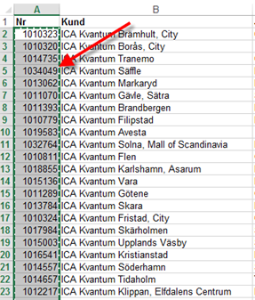 - Markera alla kundnr (inte rubriken utan bara de celler som innehåller kundnr)