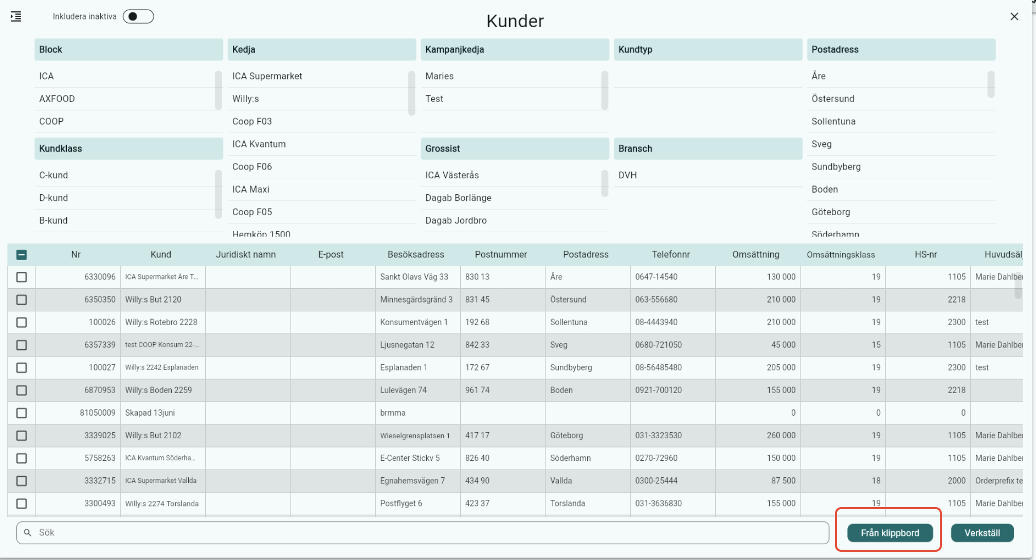 - Klicka på knappen Från klippbord så välj alla kundnr som du har kopierat från Excelfilen.