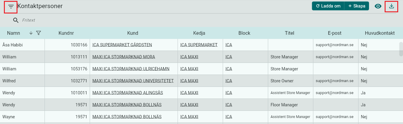 Här kan du få ut en lista på alla kontaktpersoner som finns inlagda på era kunder.