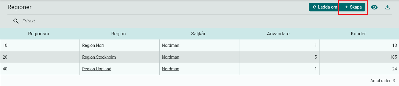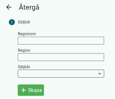 Skriv in Regionsnr och Region (namn på regionen) och koppla regionen till en säljkår
