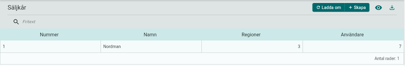 Här kan du se vilken eller vilka Säljkårer ni har upplagda.