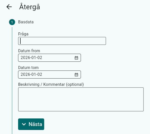 Tryck sedan på Nästa. Om alla obligatoriska fält inte är ifyllda så kommer du inte vidare.