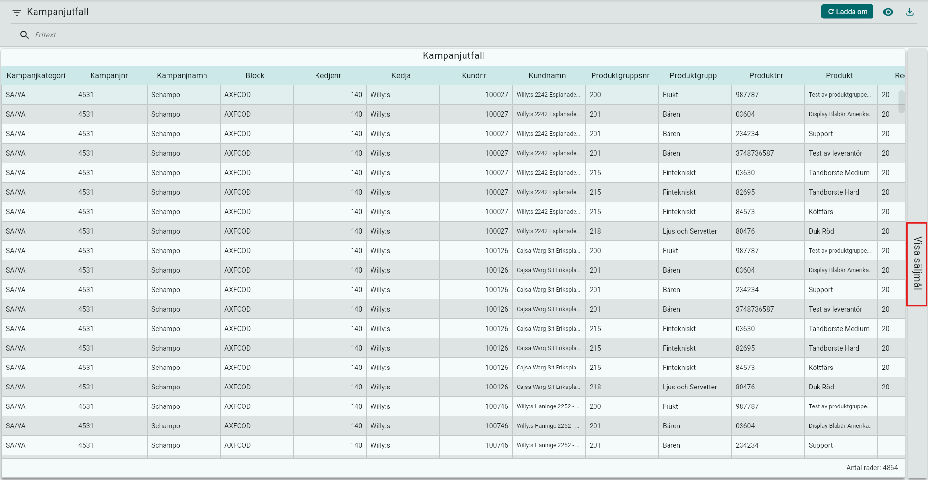 Du kan även visa utfallet som säljmål, vilket innebär att om säljarna tagit order utanför kampanjen men de uppfyller kriterierna för kampanjen. Det utfallet ser du i säljmål.