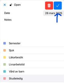 Klicka i kalendern på den dagen du vill frånvaromarkera