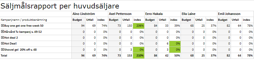 Utfall i KG per säljare/kampanj/kampanjprodukt