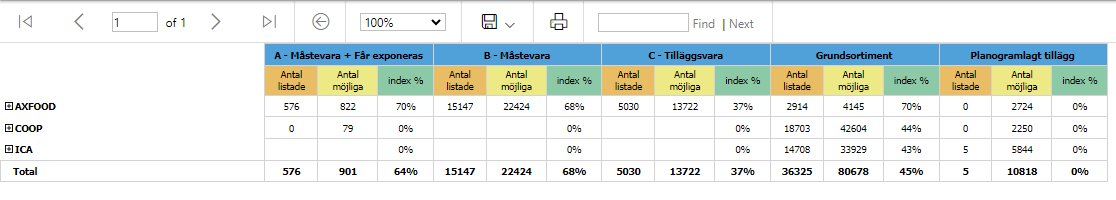 Antal listade produkter per Block/Kedja/Status