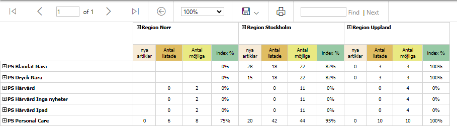 Klicka på plusset till vänster om Region för att se ner på säljarnivå.