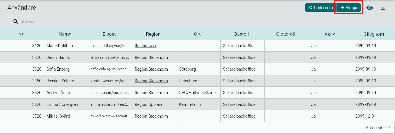 Obs! Vill du ta bort en Distrikt/Användare, kontakta Vitec Nordman support!