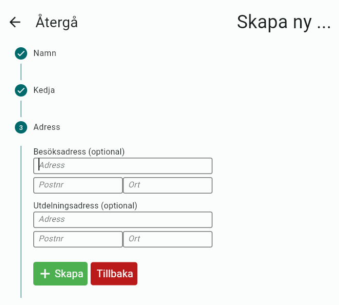 Ange Besöksadress och Utdelningsadress för kunden.