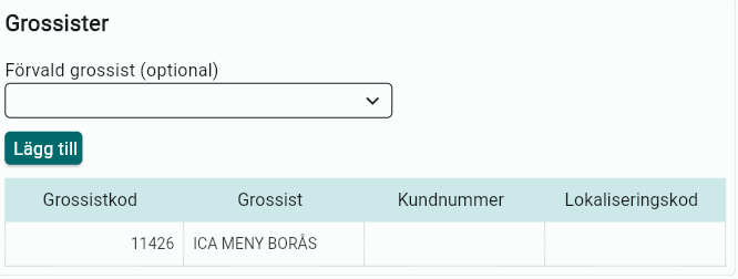 Under fliken grossister administreras vilka grossister som ska var kopplade till kunden.
