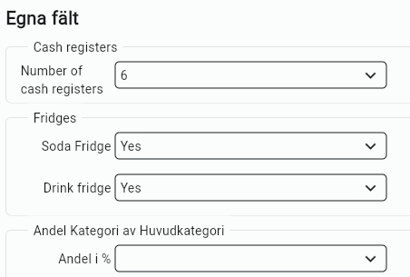 Under fliken Egna fält har du möjlighet att definiera egna fält tillsammans med Nordman.