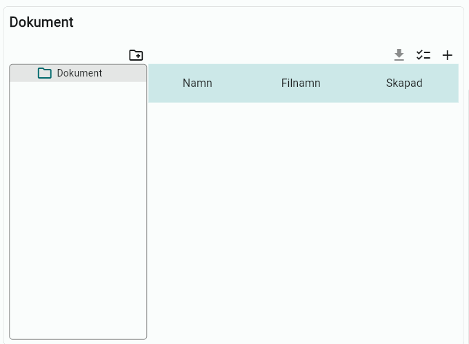 Vill du koppla ett Dokument till kunden klickar du på plustecknet.