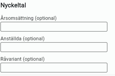 Under Nyckeltal kan du ange årsomsättning, anställda, råvariant.