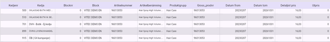 Syftet med funktionen Kedjepriser är att visa vilka priser som är registrerade för en specifik kedja.
