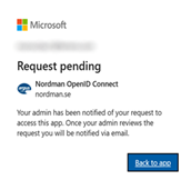 - En förfrågan skickas till den organisation som användaren tillhör. Så länge som den inte blir godkänd så kommer användaren mötes av följande bild om de försöker logga in