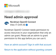 - För att en ska kunna logga in via SSO så måste en administratör för organisationen acceptera att Argus får genomföra inloggning och hämta information om användaren. Det görs enklast genom att en användare försöker logga in. Det som händer är att: